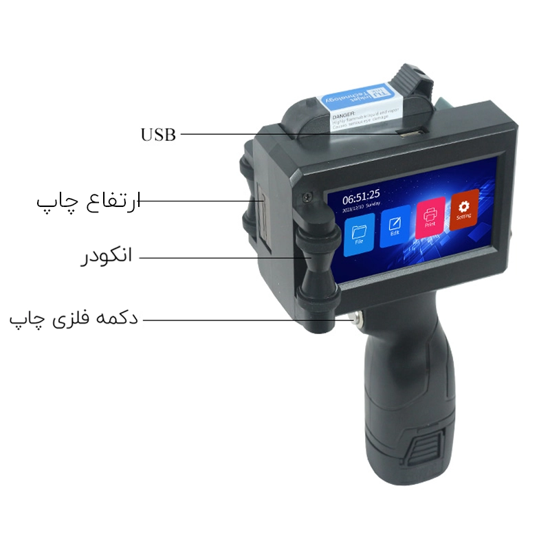 • محتوای چاپ: متن، زمان، شمارش، لوگو، بارکد متغیر، کد QR، شماره سریال و غیره.